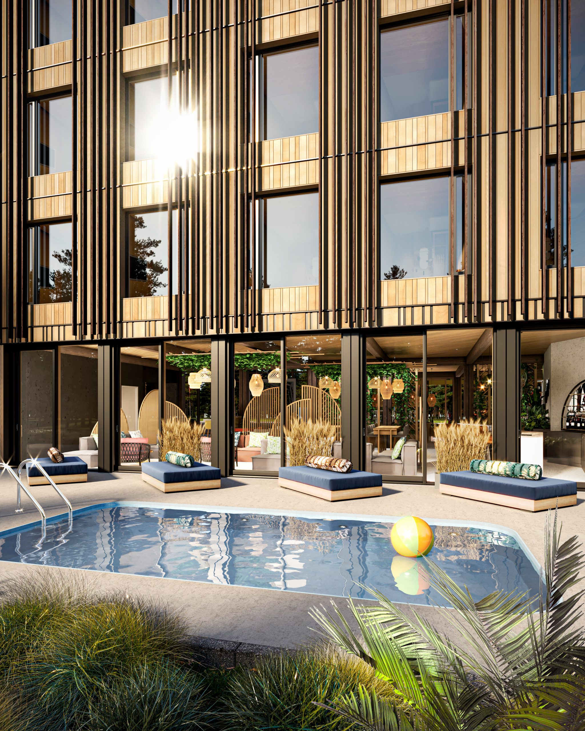 3D Visualisierung des Projekts Fleesensee von StudioFeldmann, 3D Visualiserungen aus Berlin. Ein Schwimmbad.